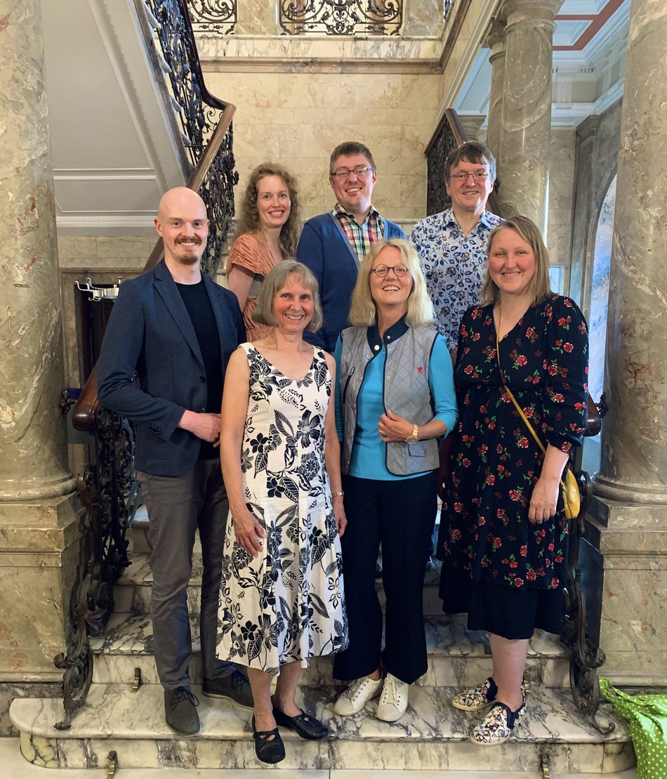 Unsere neue GRÜNE Fraktion besteht aus den Bezirksabgeordneten (v.l.n.r.): Nils Potthast, Enja Basener, Fabio Detmer, Jan Vlamynck (hinten), Anke Bendt-Soetedjo, Pia Scherhaufer und Lenka Brodbeck (vorne)