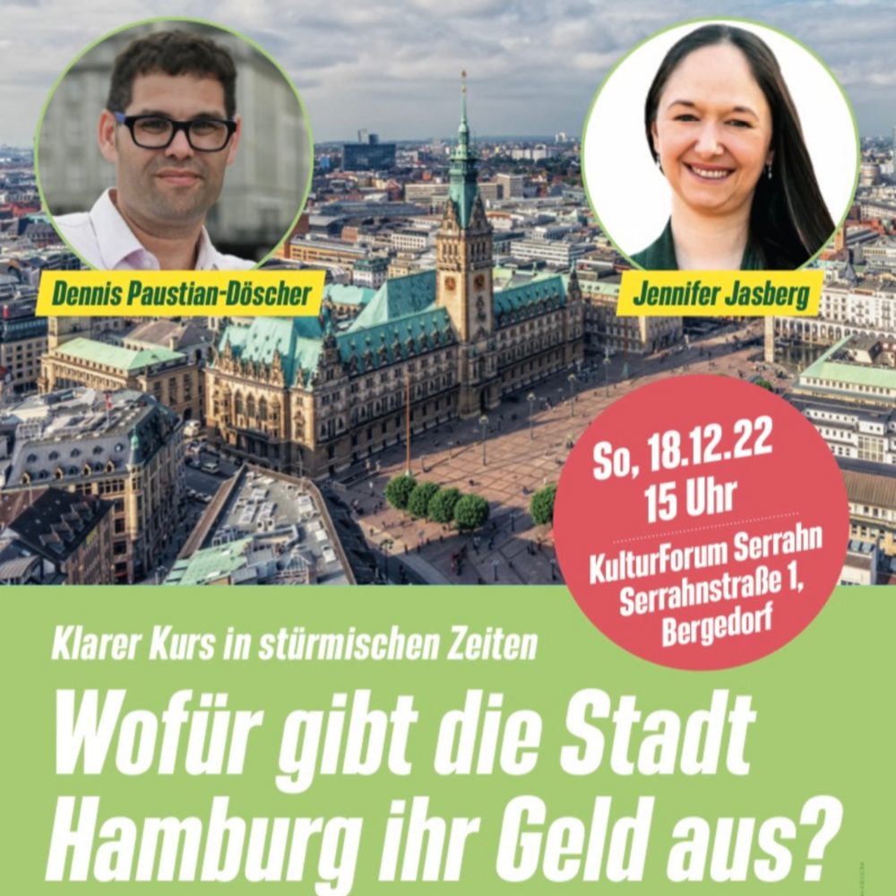 Wer sich dafür interessiert, genauer zu erfahren, wofür Hamburg sein Geld ausgibt, fühle sich herzlich eingeladen zu der Veranstaltung unserer Wahlkreisabgeordneten Jenny Jasberg und des haushaltspolitischen Sprechers der Bürgerschaftsfraktion, Dennis Paustian-Döscher,