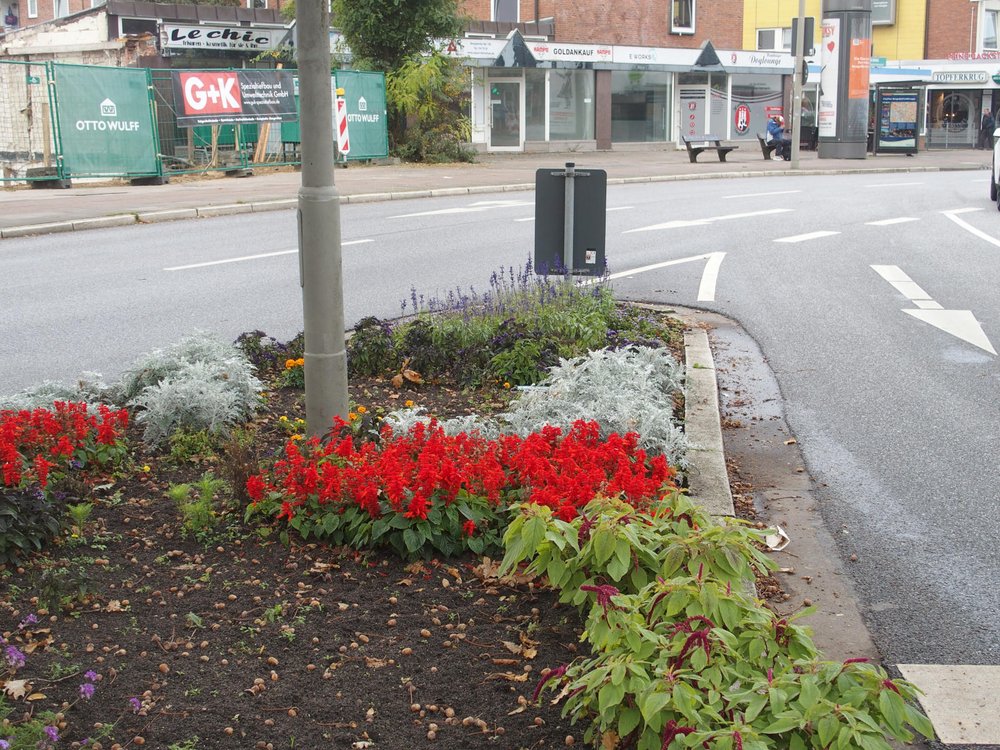 Sicher wird auf dem Mohnhof, einem der am stärksten belasteten Knotenpunkte Hamburgs, kein Bienenparadies entstehen. Hier steht der Beitrag des Grüns als Staubfänger und für das Microklima im Vordergrund. Bei anderen größeren Flächen wie den Kreiseln Binnenfeldredder sieht das jedoch anders aus.
