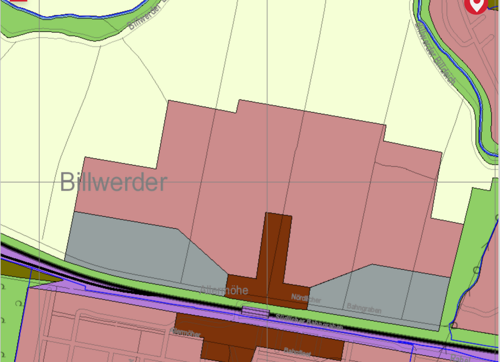 Die zu bebauende Fläche muss so begrenzt werden, dass der Landschaftskorridor nördlich der Bahn bis Billebogen in voller Breite erhalten wird. Ziel ist es, diese Fläche unter Naturschutz zu stellen.“