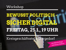 Workshop mit Moritz Duge und Jenny Jasberg Der Kreisverband Bergedorf veranstaltete aus aktuellem Anlass einen Workshop zur digitalen Sicherheit. Zusammen mit Moritz Duge (LAG Medien und Netzpolitik) und unserer Kreisvorsitzenden Jenny Jasberg (Mitarbeiterin im Ministerium …