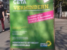 Aufruf zu bundesweiten Großdemonstrationen in sieben Städten: STOP CETA und TTIP Sa, 17., Sept. 12 Uhr Hamburg, Rathausmarkt gemeinsame Abfahrt in Bergedorf: 10:45 auf Gleis 4 Bahnhof Bergedorf (S 21)