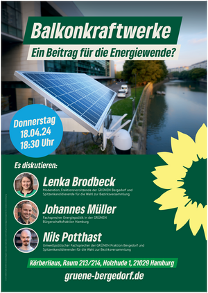 GRÜNE Bergedorf lädt ein: Es diskutieren Lenka Brodbeck, Johannes Müller und Nils Potthast.