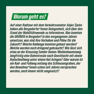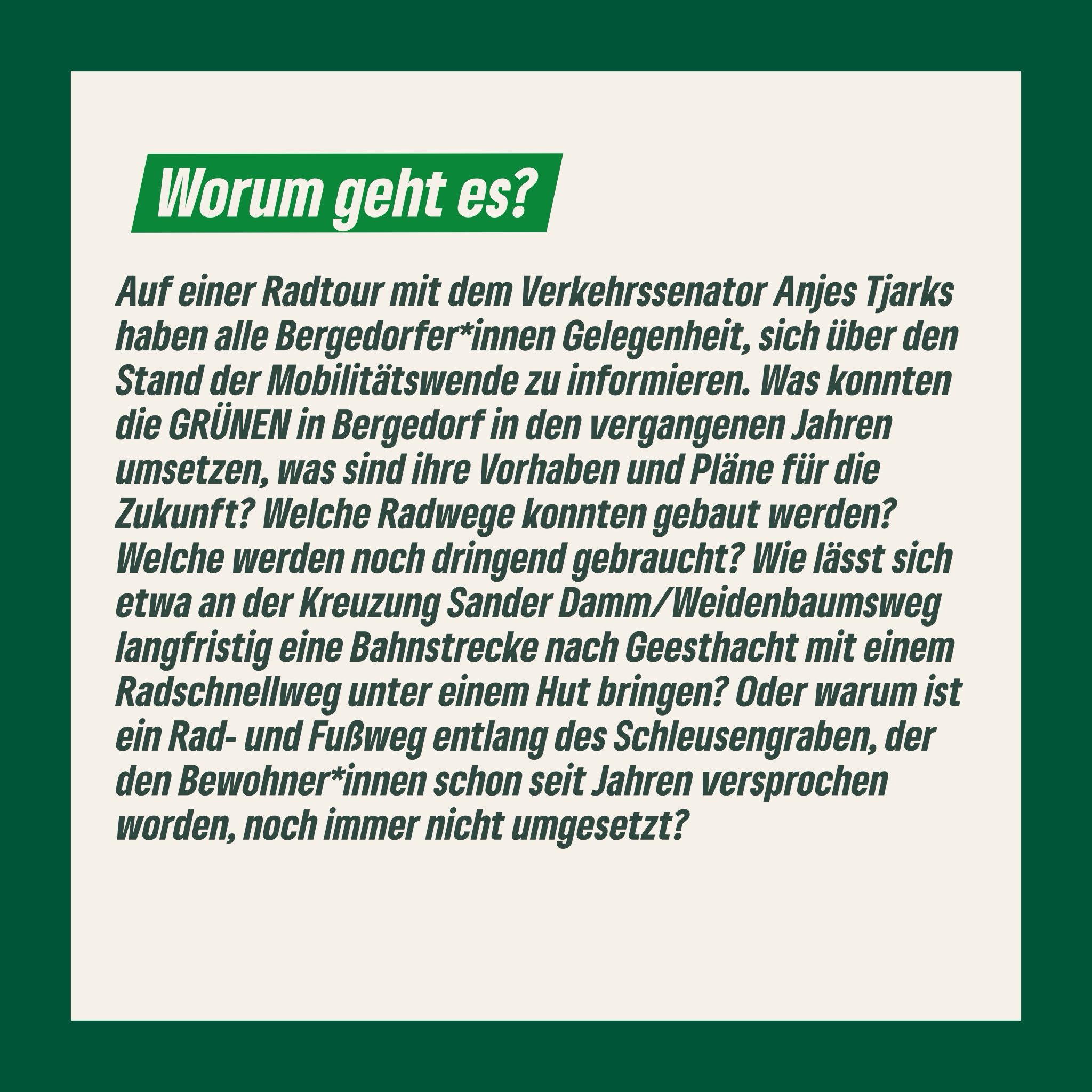 Gemeinsame Radtour mit Anjes Tjarks, Senator für Verkehr und Mobilitätswende.